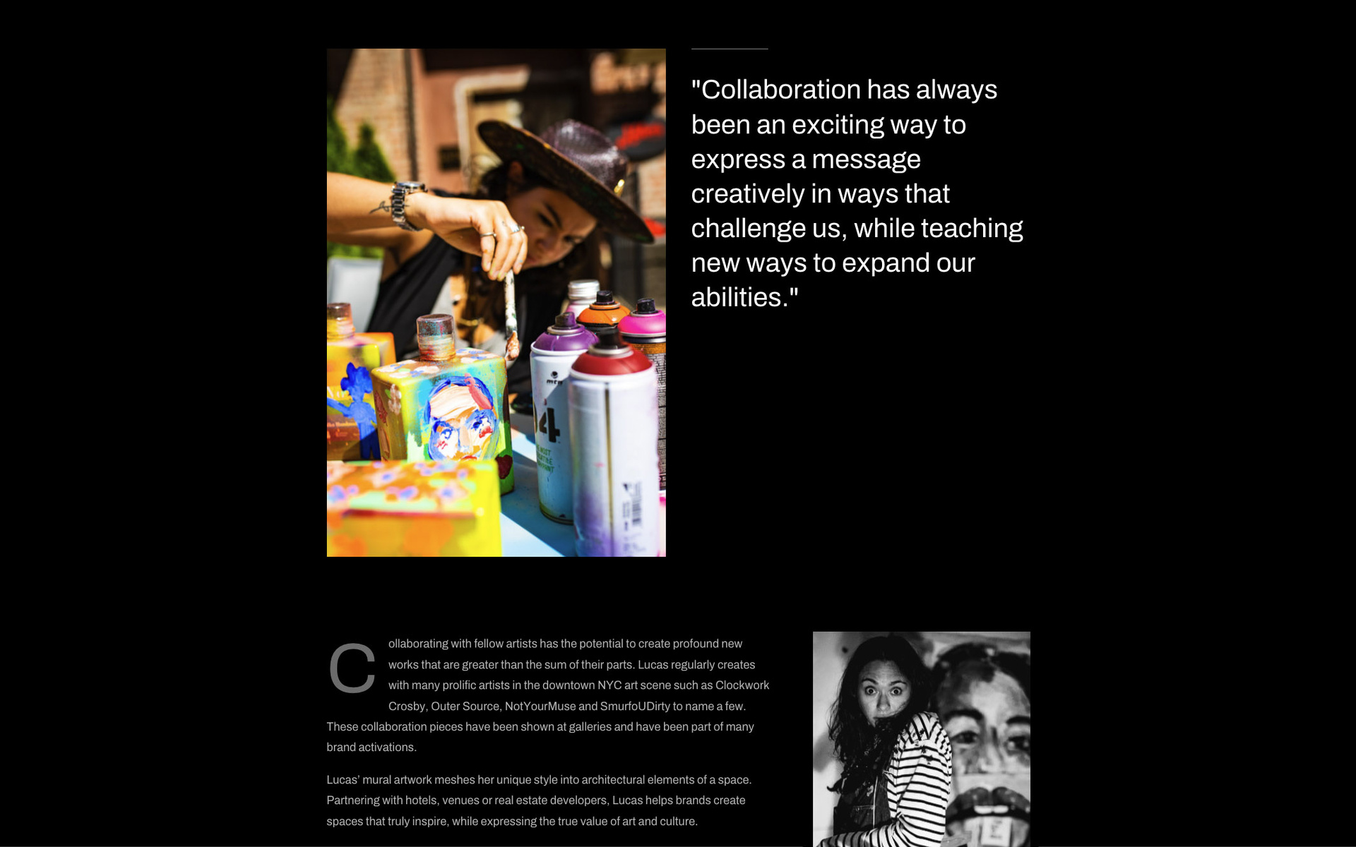 The biggest challenge was capturing the unique spirit of Keli Lucas. Her brand was built on a raw, hands-on, and often chaotic NYC artist lifestyle that worked well on Instagram, but was difficult to package for a professional portfolio. Her world was grungy, filled with everything from scribbled-on receipts, works on paper, to powerful expressionistic portraits. The goal was to translate that world into a clean, organized website without it feeling generic. We needed to create something that would appeal to high-end clients while staying true to the raw creativity that made her popular in the first place.